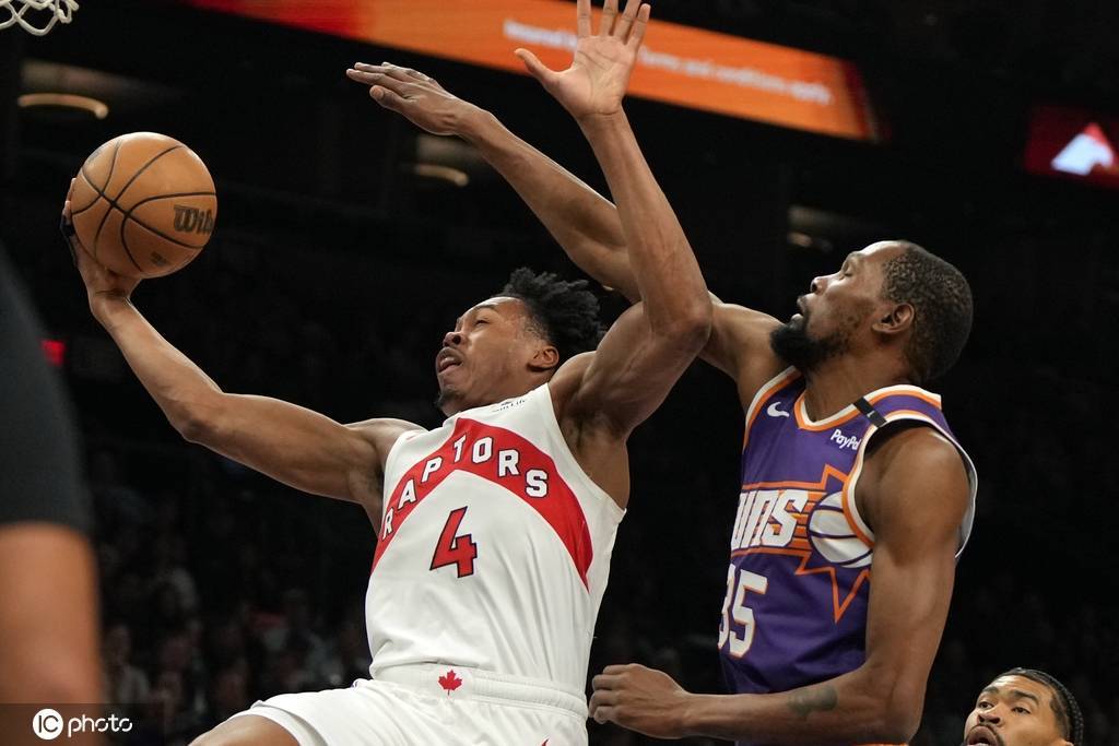 猛龙队首发:斯科蒂-巴恩斯、伊曼纽尔-奎克利、杰米森-巴特尔、科林-卡斯尔顿、乔纳森-莫格博